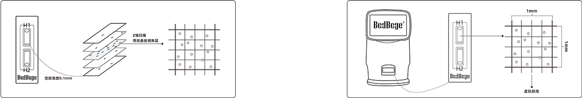 自適應-智能自動對焦技術能夠自適應性地調整焦距(Z軸掃描),確保在不同區域、不同狀態下的細胞圖像清晰、銳利。配合X、Y軸精密運動,可實現多區域圖像采集(最高21個靶面);細胞計數片采用兩孔設計,0.1mm計數池高度,細胞沉降快、分層少,計數更準確。