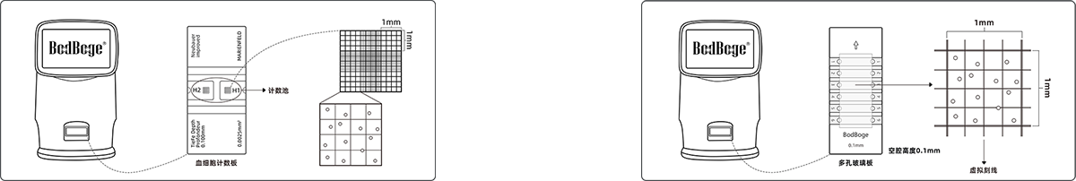 儀器參照“血細胞計數板”計數標準設計(JJG 552-1988血細胞計數板試行檢定規程),可使用標準的血細胞計數板。細胞濃度=(四個大方格細胞數之和)/4×(稀釋倍數)×104,可人工復核計數結果的準確性;多孔玻璃板,六孔通量,玻璃材質,透光性好,可重復使用。