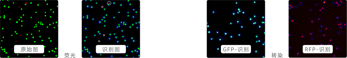 雙色熒光計數:利用AOPI熒光染料,進行紅綠雙色熒光標記的細胞實驗;轉染率測定:可以測定綠色熒光蛋白(GFP)和紅色熒光蛋白(RFP)的轉染效率。