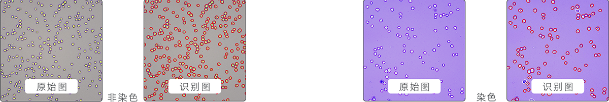 非染色計數(發明專利號:ZL 201310101403.0):無需染色,直接對細胞進行計數和區分活死細胞,適用于狀態良好、背景干凈的培養細胞;臺盼藍染色計數:區分活細胞和死細胞的經典方法,相比非染色法,色彩變化更直觀。