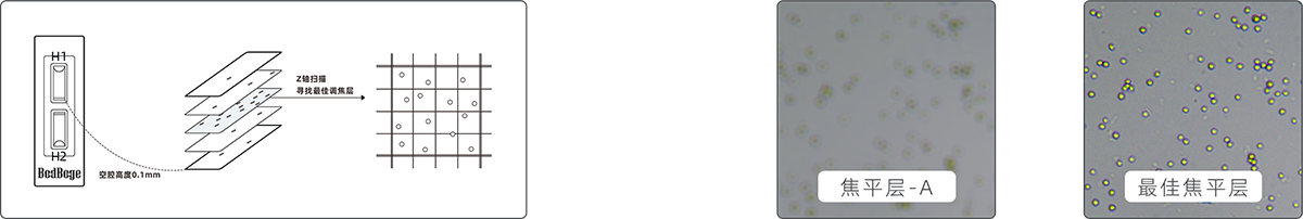 儀器的X、Y、Z三軸聯動系統,無需手動操作每個孔位/每個計數靶面的焦距,讓細胞計數全自動化(自動走位、自動采集圖像、自動調焦),節省了時間和人力成本;當細胞濃度低時,可選擇21個靶面進行細胞計數(案例細胞圖為小球藻)。